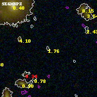 Black segments are analyzed here. Roll mouse over color images to view segments. Best viewed in a wide browser window (1200 pixels or more). Download SED & P(z) plots to view larger versions.