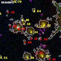 Black segments are analyzed here. Roll mouse over color images to view segments. Best viewed in a wide browser window (1200 pixels or more). Download SED & P(z) plots to view larger versions.