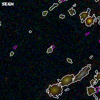 Black segments are analyzed here. Roll mouse over color images to view segments. Best viewed in a wide browser window (1200 pixels or more). Download SED & P(z) plots to view larger versions.