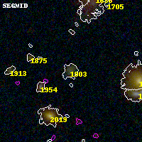 Black segments are analyzed here. Roll mouse over color images to view segments. Best viewed in a wide browser window (1200 pixels or more). Download SED & P(z) plots to view larger versions.
