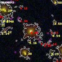 Black segments are analyzed here. Roll mouse over color images to view segments. Best viewed in a wide browser window (1200 pixels or more). Download SED & P(z) plots to view larger versions.