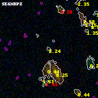 Black segments are analyzed here. Roll mouse over color images to view segments. Best viewed in a wide browser window (1200 pixels or more). Download SED & P(z) plots to view larger versions.