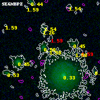 Black segments are analyzed here. Roll mouse over color images to view segments. Best viewed in a wide browser window (1200 pixels or more). Download SED & P(z) plots to view larger versions.