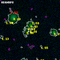 Black segments are analyzed here. Roll mouse over color images to view segments. Best viewed in a wide browser window (1200 pixels or more). Download SED & P(z) plots to view larger versions.