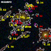 Black segments are analyzed here. Roll mouse over color images to view segments. Best viewed in a wide browser window (1200 pixels or more). Download SED & P(z) plots to view larger versions.