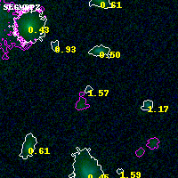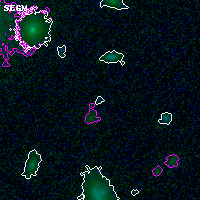 Black segments are analyzed here. Roll mouse over color images to view segments. Best viewed in a wide browser window (1200 pixels or more). Download SED & P(z) plots to view larger versions.