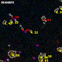 Black segments are analyzed here. Roll mouse over color images to view segments. Best viewed in a wide browser window (1200 pixels or more). Download SED & P(z) plots to view larger versions.