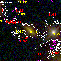 Black segments are analyzed here. Roll mouse over color images to view segments. Best viewed in a wide browser window (1200 pixels or more). Download SED & P(z) plots to view larger versions.