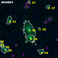 Black segments are analyzed here. Roll mouse over color images to view segments. Best viewed in a wide browser window (1200 pixels or more). Download SED & P(z) plots to view larger versions.