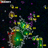 Black segments are analyzed here. Roll mouse over color images to view segments. Best viewed in a wide browser window (1200 pixels or more). Download SED & P(z) plots to view larger versions.