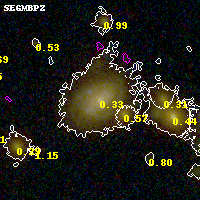 Black segments are analyzed here. Roll mouse over color images to view segments. Best viewed in a wide browser window (1200 pixels or more). Download SED & P(z) plots to view larger versions.