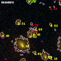 Black segments are analyzed here. Roll mouse over color images to view segments. Best viewed in a wide browser window (1200 pixels or more). Download SED & P(z) plots to view larger versions.