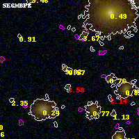 Black segments are analyzed here. Roll mouse over color images to view segments. Best viewed in a wide browser window (1200 pixels or more). Download SED & P(z) plots to view larger versions.