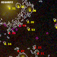 Black segments are analyzed here. Roll mouse over color images to view segments. Best viewed in a wide browser window (1200 pixels or more). Download SED & P(z) plots to view larger versions.