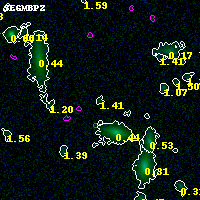 Black segments are analyzed here. Roll mouse over color images to view segments. Best viewed in a wide browser window (1200 pixels or more). Download SED & P(z) plots to view larger versions.