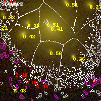Black segments are analyzed here. Roll mouse over color images to view segments. Best viewed in a wide browser window (1200 pixels or more). Download SED & P(z) plots to view larger versions.