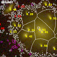 Black segments are analyzed here. Roll mouse over color images to view segments. Best viewed in a wide browser window (1200 pixels or more). Download SED & P(z) plots to view larger versions.