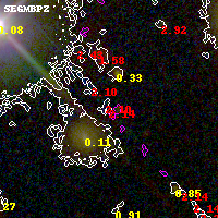 Black segments are analyzed here. Roll mouse over color images to view segments. Best viewed in a wide browser window (1200 pixels or more). Download SED & P(z) plots to view larger versions.