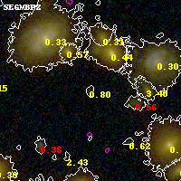 Black segments are analyzed here. Roll mouse over color images to view segments. Best viewed in a wide browser window (1200 pixels or more). Download SED & P(z) plots to view larger versions.