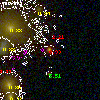 Black segments are analyzed here. Roll mouse over color images to view segments. Best viewed in a wide browser window (1200 pixels or more). Download SED & P(z) plots to view larger versions.