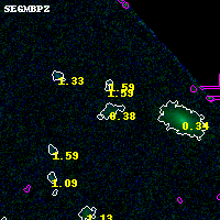 Black segments are analyzed here. Roll mouse over color images to view segments. Best viewed in a wide browser window (1200 pixels or more). Download SED & P(z) plots to view larger versions.