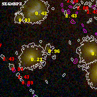 Black segments are analyzed here. Roll mouse over color images to view segments. Best viewed in a wide browser window (1200 pixels or more). Download SED & P(z) plots to view larger versions.