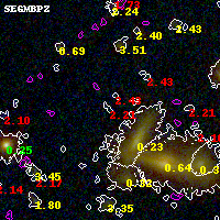 Black segments are analyzed here. Roll mouse over color images to view segments. Best viewed in a wide browser window (1200 pixels or more). Download SED & P(z) plots to view larger versions.