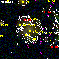 Black segments are analyzed here. Roll mouse over color images to view segments. Best viewed in a wide browser window (1200 pixels or more). Download SED & P(z) plots to view larger versions.