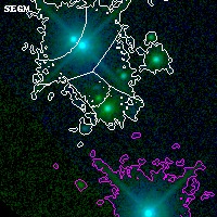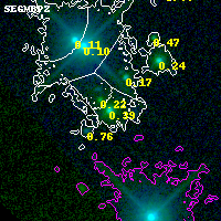 Black segments are analyzed here. Roll mouse over color images to view segments. Best viewed in a wide browser window (1200 pixels or more). Download SED & P(z) plots to view larger versions.