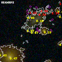 Black segments are analyzed here. Roll mouse over color images to view segments. Best viewed in a wide browser window (1200 pixels or more). Download SED & P(z) plots to view larger versions.