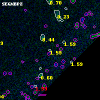 Black segments are analyzed here. Roll mouse over color images to view segments. Best viewed in a wide browser window (1200 pixels or more). Download SED & P(z) plots to view larger versions.