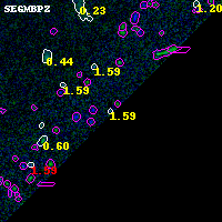 Black segments are analyzed here. Roll mouse over color images to view segments. Best viewed in a wide browser window (1200 pixels or more). Download SED & P(z) plots to view larger versions.