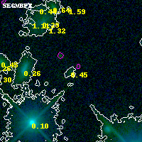Object #400   x,y = (2528, 4497)   RA, Dec = (06:00:10.512, -20:06:22.32) = (90.04380, -20.10620)   BPZ = 0.446 [0.154--3.285]   type = 9.20 (SB2_B10 - SB3_B10)   stellarity = 0.00   chisq2 = 0.00   ODDS = 0.08   z_cluster = 0.460
