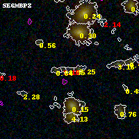 Black segments are analyzed here. Roll mouse over color images to view segments. Best viewed in a wide browser window (1200 pixels or more). Download SED & P(z) plots to view larger versions.