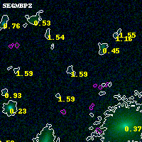Black segments are analyzed here. Roll mouse over color images to view segments. Best viewed in a wide browser window (1200 pixels or more). Download SED & P(z) plots to view larger versions.