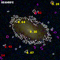 Black segments are analyzed here. Roll mouse over color images to view segments. Best viewed in a wide browser window (1200 pixels or more). Download SED & P(z) plots to view larger versions.