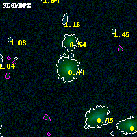 Black segments are analyzed here. Roll mouse over color images to view segments. Best viewed in a wide browser window (1200 pixels or more). Download SED & P(z) plots to view larger versions.