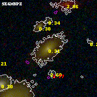 Black segments are analyzed here. Roll mouse over color images to view segments. Best viewed in a wide browser window (1200 pixels or more). Download SED & P(z) plots to view larger versions.