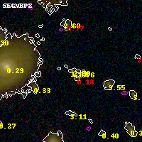 Black segments are analyzed here. Roll mouse over color images to view segments. Best viewed in a wide browser window (1200 pixels or more). Download SED & P(z) plots to view larger versions.