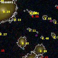 Black segments are analyzed here. Roll mouse over color images to view segments. Best viewed in a wide browser window (1200 pixels or more). Download SED & P(z) plots to view larger versions.