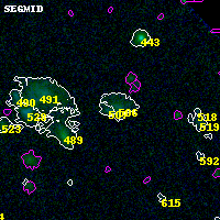 Black segments are analyzed here. Roll mouse over color images to view segments. Best viewed in a wide browser window (1200 pixels or more). Download SED & P(z) plots to view larger versions.