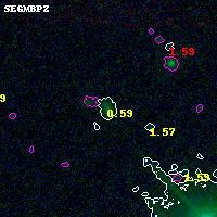 Black segments are analyzed here. Roll mouse over color images to view segments. Best viewed in a wide browser window (1200 pixels or more). Download SED & P(z) plots to view larger versions.