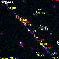 Black segments are analyzed here. Roll mouse over color images to view segments. Best viewed in a wide browser window (1200 pixels or more). Download SED & P(z) plots to view larger versions.