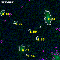 Black segments are analyzed here. Roll mouse over color images to view segments. Best viewed in a wide browser window (1200 pixels or more). Download SED & P(z) plots to view larger versions.