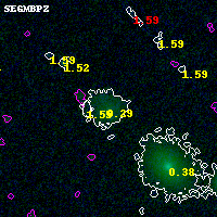 Black segments are analyzed here. Roll mouse over color images to view segments. Best viewed in a wide browser window (1200 pixels or more). Download SED & P(z) plots to view larger versions.