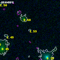 Black segments are analyzed here. Roll mouse over color images to view segments. Best viewed in a wide browser window (1200 pixels or more). Download SED & P(z) plots to view larger versions.