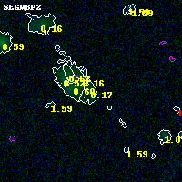 Black segments are analyzed here. Roll mouse over color images to view segments. Best viewed in a wide browser window (1200 pixels or more). Download SED & P(z) plots to view larger versions.