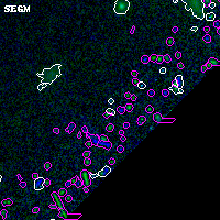 Black segments are analyzed here. Roll mouse over color images to view segments. Best viewed in a wide browser window (1200 pixels or more). Download SED & P(z) plots to view larger versions.