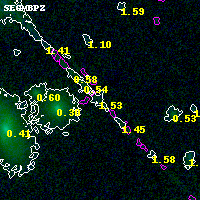 Black segments are analyzed here. Roll mouse over color images to view segments. Best viewed in a wide browser window (1200 pixels or more). Download SED & P(z) plots to view larger versions.