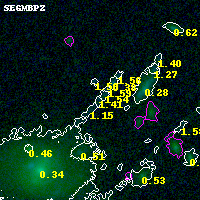 Black segments are analyzed here. Roll mouse over color images to view segments. Best viewed in a wide browser window (1200 pixels or more). Download SED & P(z) plots to view larger versions.